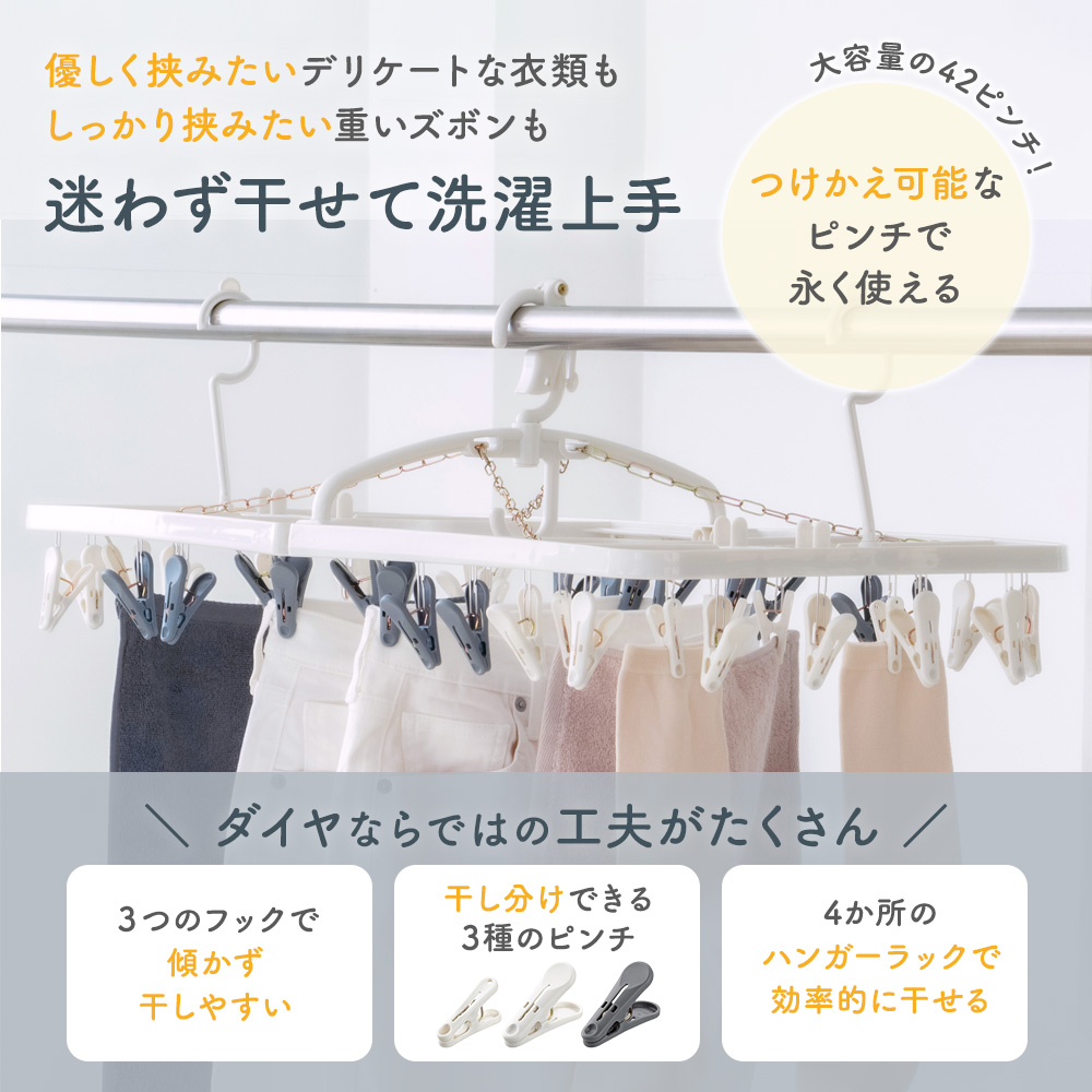 ピンチハンガー 角ハンガー 洗濯ハンガー 42ピンチ ピンチ付け替え可能 北欧風カラー つけかえ干し分け ジーンズ デリケート 送料無料