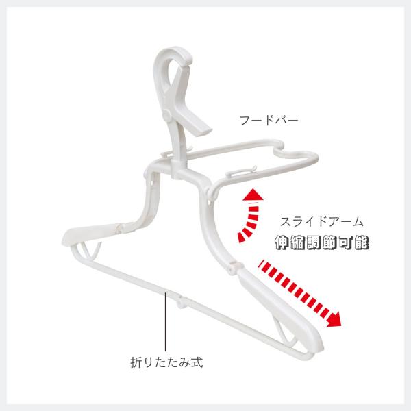 KOKUBO パーカー ハンガー 折りたたみ式 ホワイト 3個セット 洗濯ハンガー パーカー用 洗濯