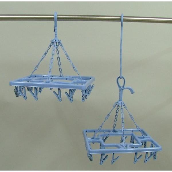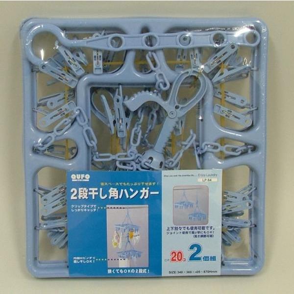 洗濯物干し 2段干し角ハンガー ピンチ20個付き 洗濯ハンガー ブルー
