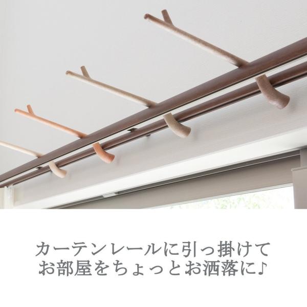 小物ハンガー eda (2本入)カーテンレール ハンガー おしゃれ 木調 小物かけ 帽子 ハット 止まり木 日本製 かわいい 簡単 便利 インテリア 木 枝