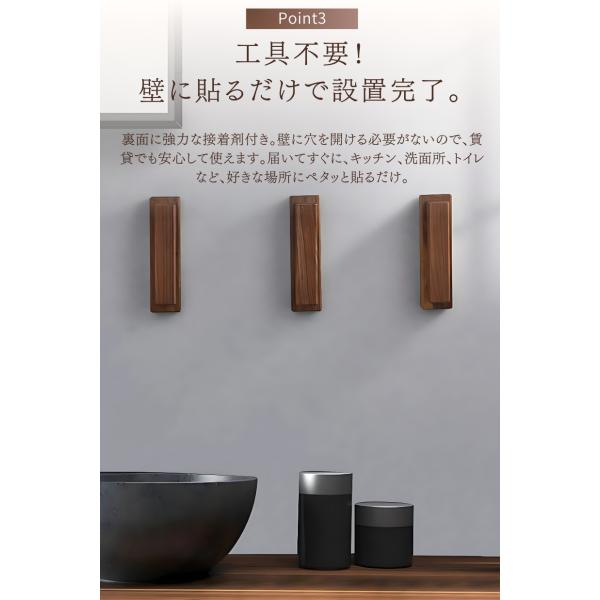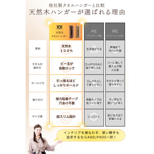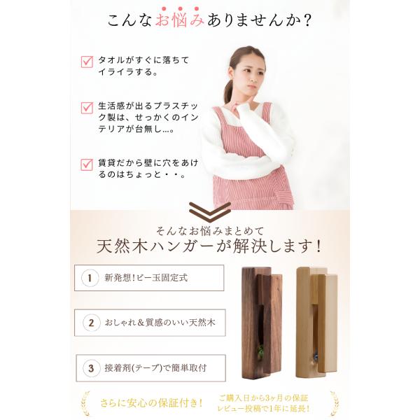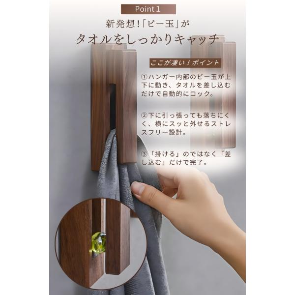 タオルハンガー 木製 おしゃれ 落ちない トイレ 洗面所 キッチン タオル掛け 賃貸 穴あけ不要 壁 傷つけない 天然木 おしゃれ ウォールナット ブナ TH4
