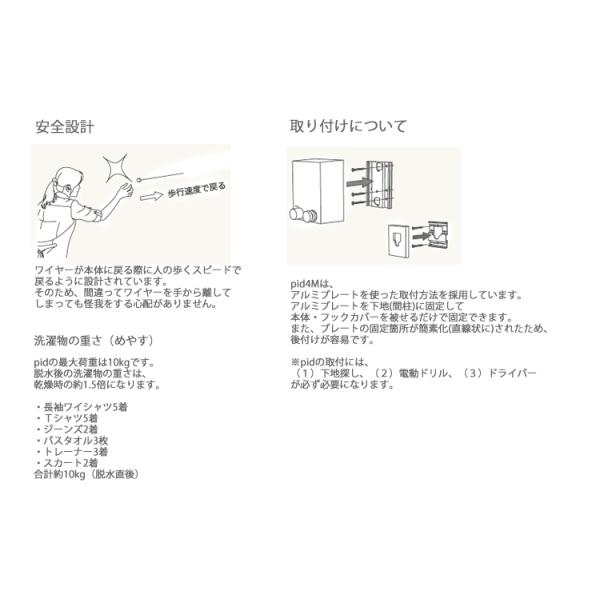 今だけおまけ付 送料無料 森田アルミ工業 室内物干し [pid 4m] ワイヤー4m内蔵タイプ 物干しワイヤー 物干しロープ 壁面取付 優良配送
