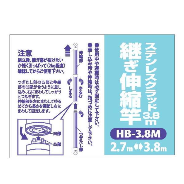 物干し竿 ステンレス 継ぎ伸縮 パイプ直径29mm 2.65m〜3.8m HB-3.8M 1本
