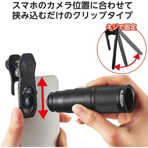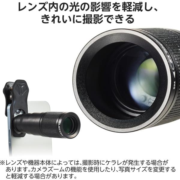 エレコム スマホ 望遠レンズ 8倍 8× 外付け 挟むだけ FMC加工 ケラレ現象軽減 レンズキャップ付き 収納ポーチ付属 iphone P-SLZ8XBK