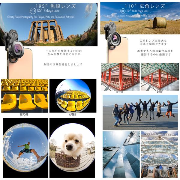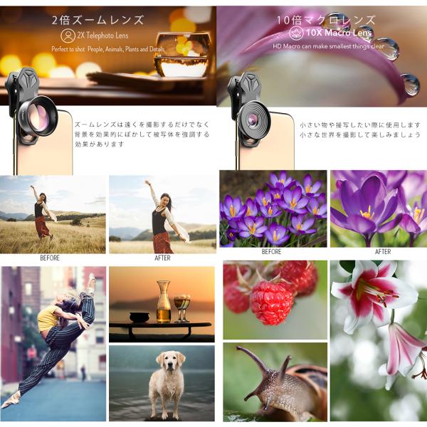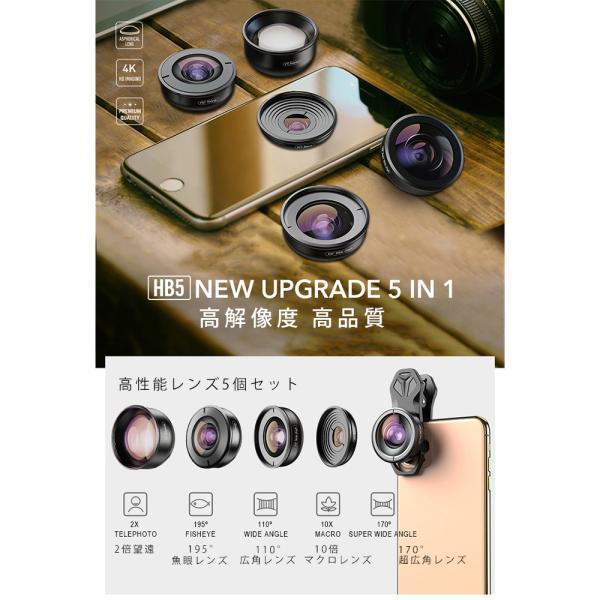 スマホレンズ Apexel レンズ HD版 スマートフォン用レンズ 10倍マクロ 2倍望遠 110°広角 170°超広角 195°魚眼 5in1レンズキット APL-HB5