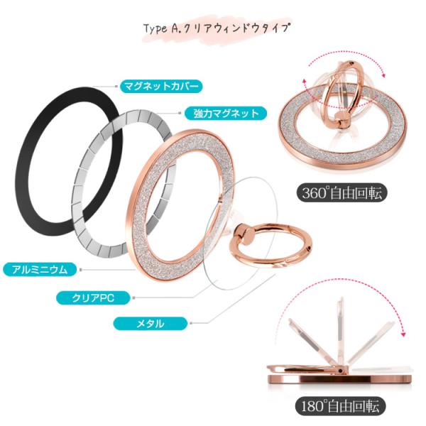 Magsafe対応 スマホリング iPhone リング ホールドリング マグネット搭載 スマートフォン リング付き スタンド スリム 軽量 おしゃれ かわいい 韓国 キラキラ