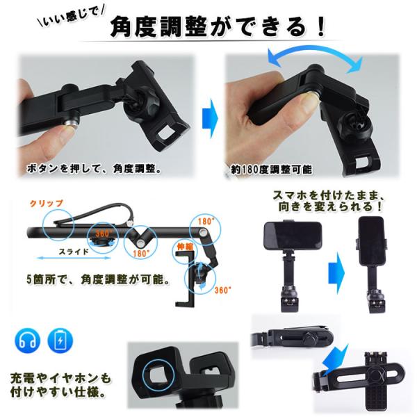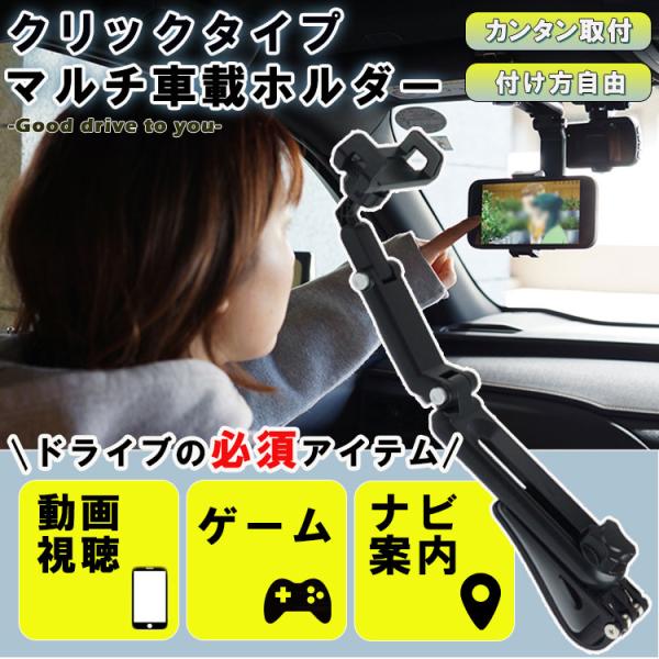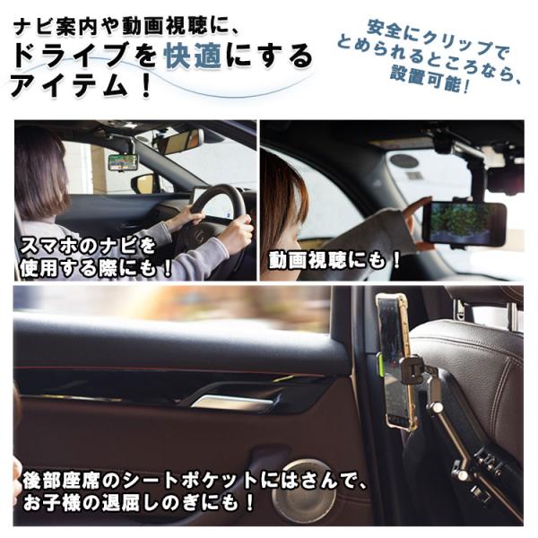 車載ホルダー スマホホルダー 360度回転 自由調節 スマートフォン モニター 動画 ホルダー iPhone Android マルチ 退屈解消 自撮り棒 クリップ サンバイザー