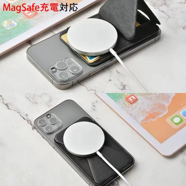 各社スマートフォン対応 折り畳み 超薄型 スマホスタンド カード収納付き MagSafe充電対応(デスクトップスタンド ホルダー iPhone Galaxy Huawei 折りたたみ)