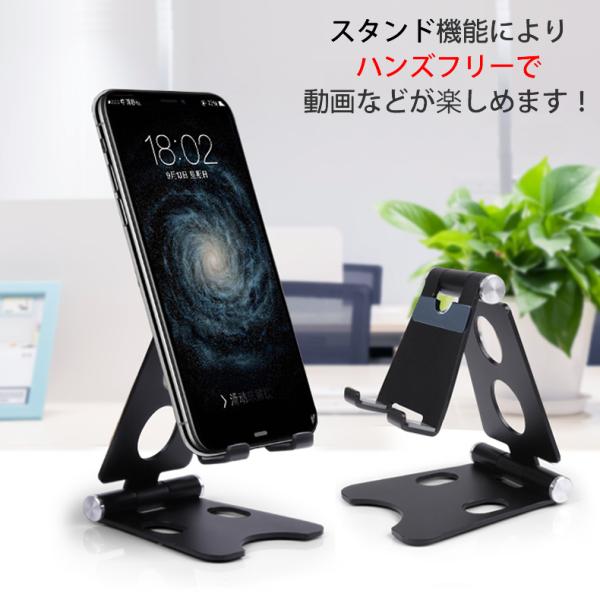 各社スマートフォン&タブレット対応 デスクトップスタンド 金属 全5色 【卓上 折りたたみ アルミ iPhone iPad Galaxy HUAWEI Honor Xperia ホルダー スマホ】