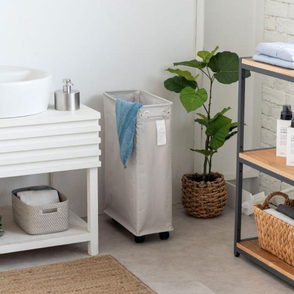 ランドリー バスケット ボックス ワゴン キャスター付き スリム 約20cm 脱衣 洗濯 かご 収納 洗濯物入れ 大容量 おしゃれ 北欧 ナチュラル 西海岸 67010