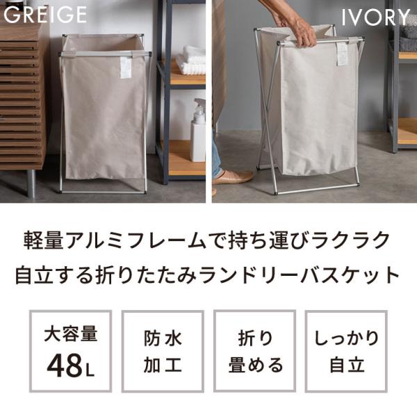 ランドリーバスケット 防水 折りたたみ 脱衣かご スリム 大容量 フレーム付き 50L ゴミ箱 洗面所 収納 おしゃれ 北欧 リゾート インテリア 自立 西海岸 67208