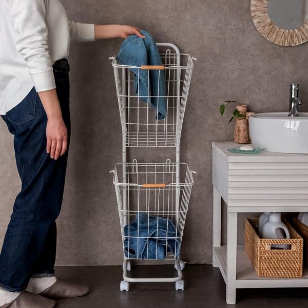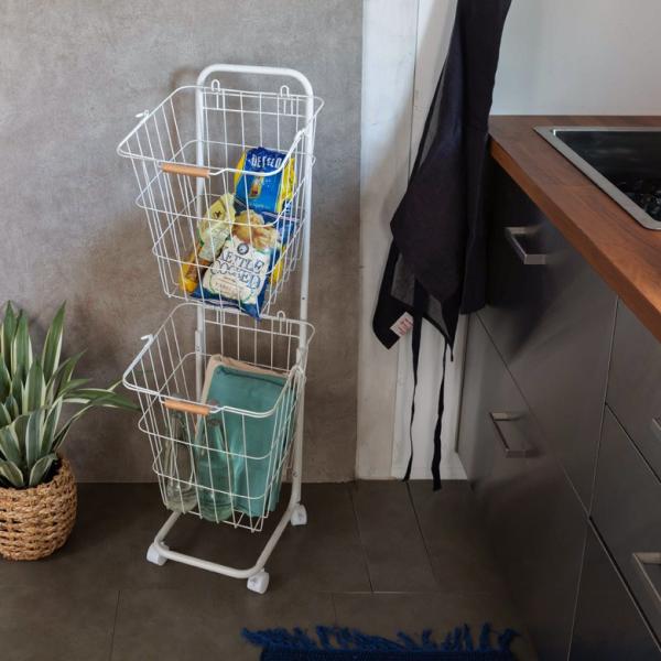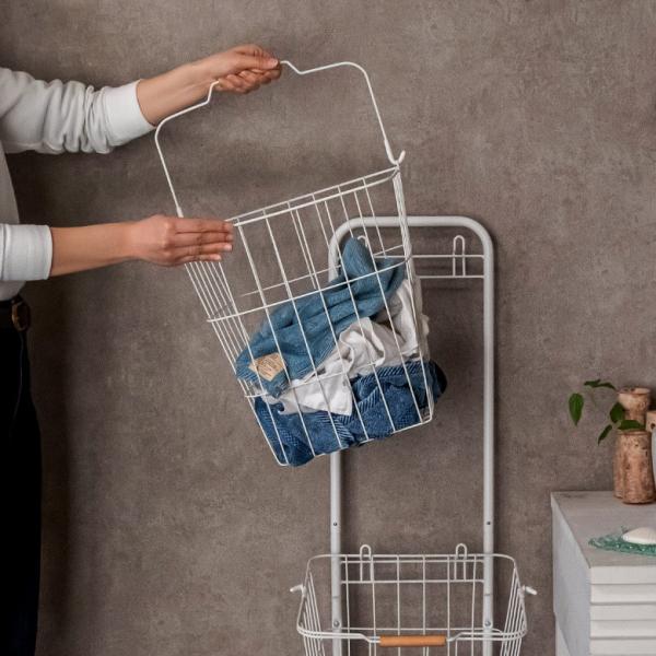 ラック 3段 ワゴン スチール製 キッチンワゴン キャスター付き シンプル ランドリー 取り外し可能 ワイヤー バスケット 収納 収納家具 選択カゴ 91472