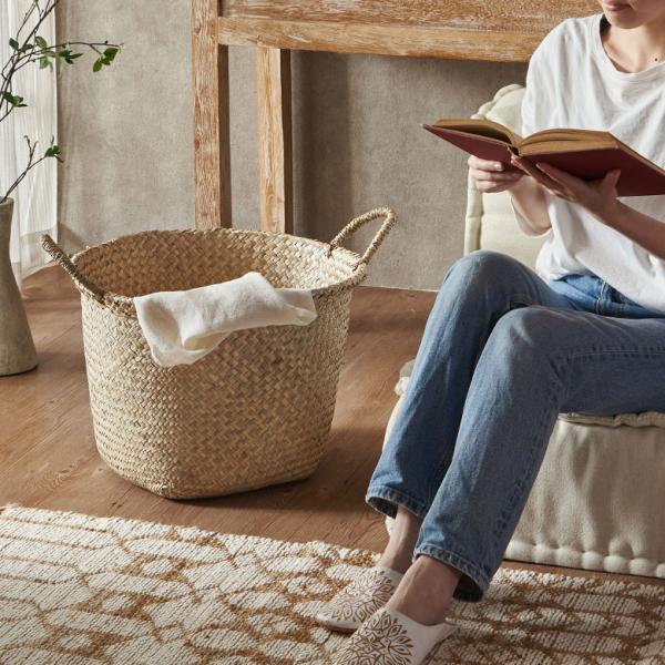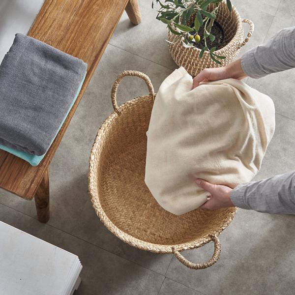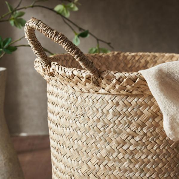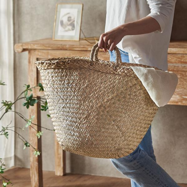 バスケット かご 安い 収納 おしゃれ ハンドル付き かごバスケット 取っ手 収納バスケット カゴ 籠 かごバッグ シーグラス 天然素材 アジア工房 vn50562