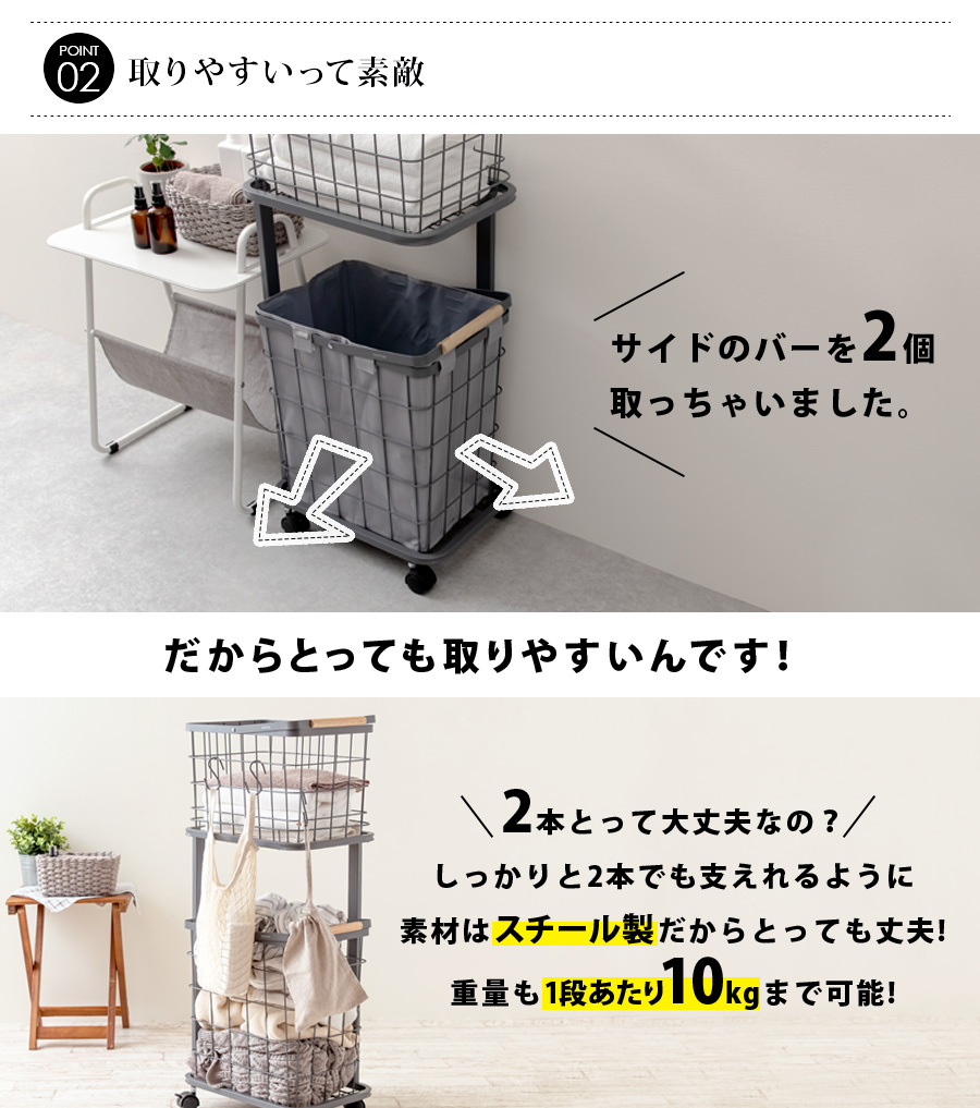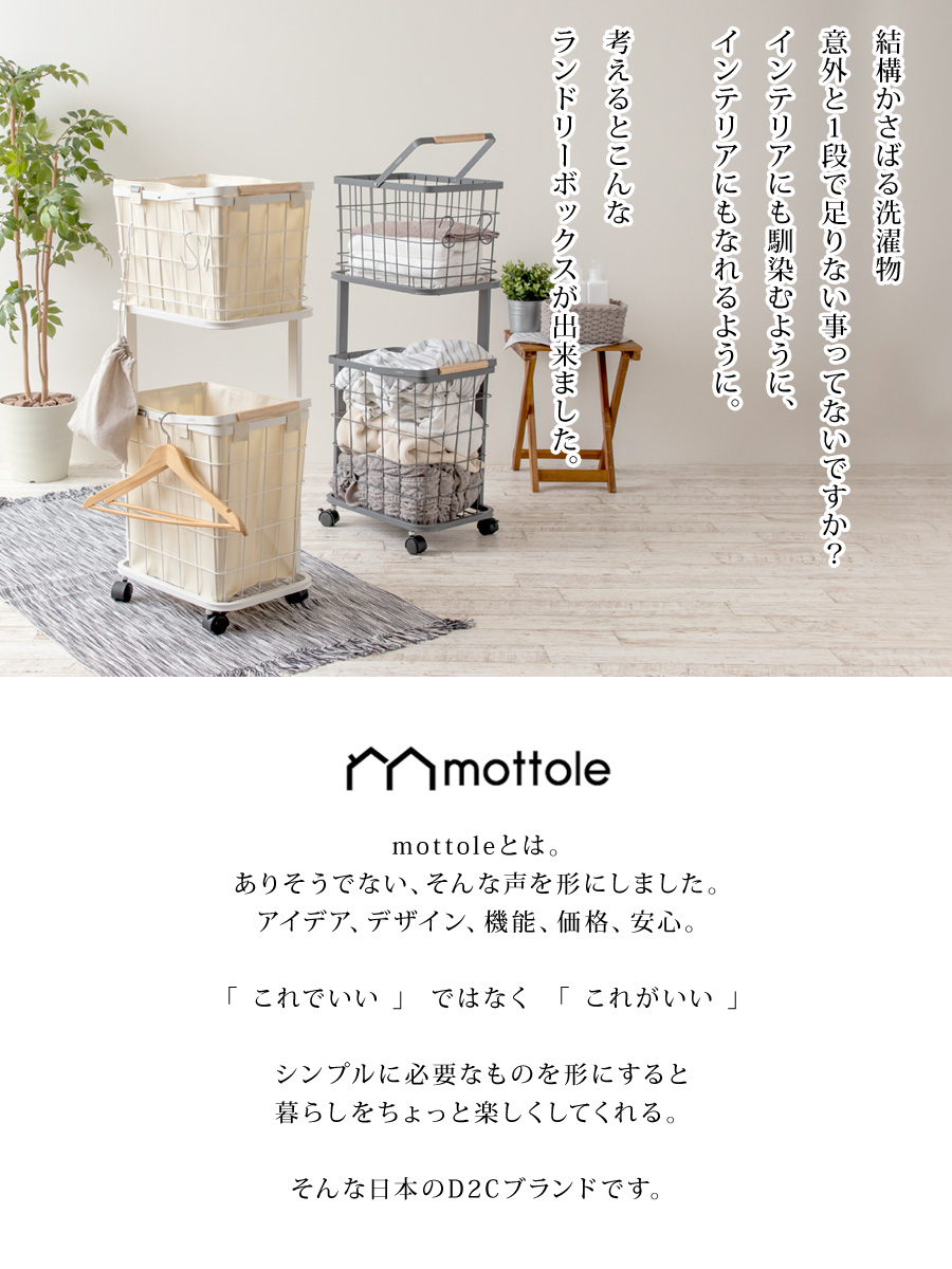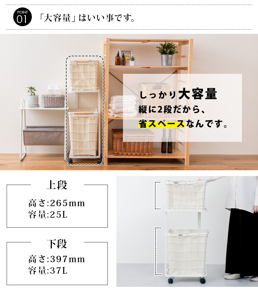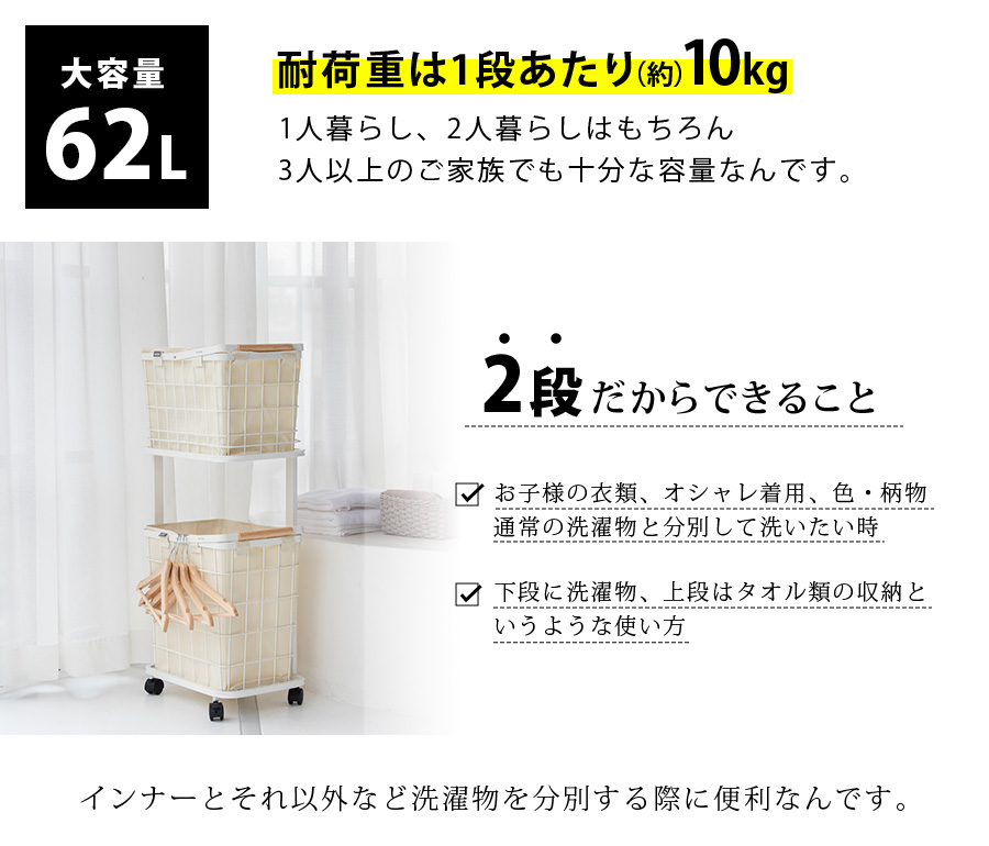 ランドリーバスケット 2段 大容量 スリム 省スペース キャスター付き カバー付き ランドリーラック ランドリーワゴン 洗濯カゴ おしゃれ シンプル MTL-S009