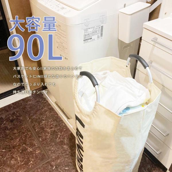 ランドリーバスケット 洗濯かご 折りたたみ おしゃれ スリム 大容量 90L 特大 洗濯 脱衣 おもちゃ かご 折り畳み 取っ手 コンパクト 収納 移動 軽量