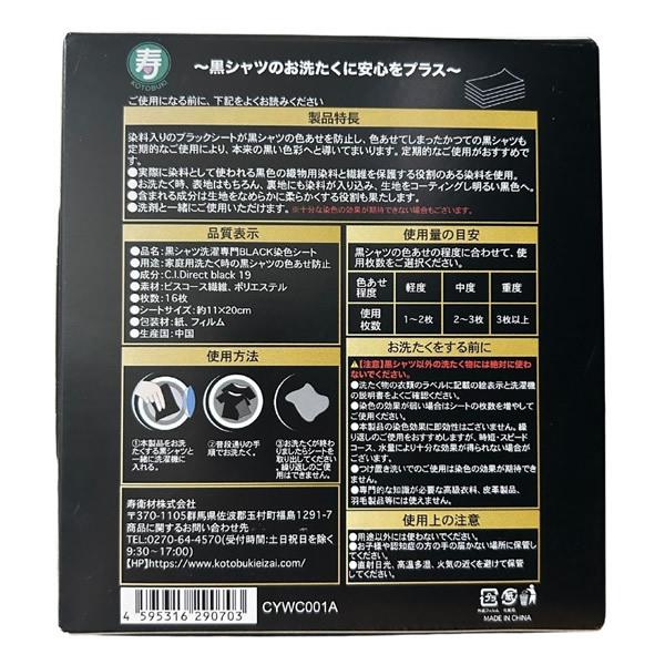 黒シャツ洗濯専門 BLACK染色シート 16枚入り (メール便送料無料) 黒染色 ブラック染色シート 黒シャツ 染色シート 色褪せ防止 色あせ防止 洗濯 洗たく 寿衛材