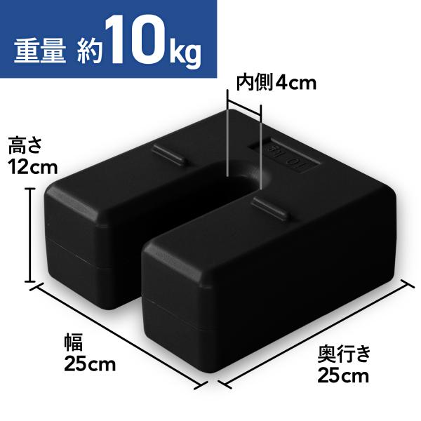 重り U型ベースウエイト 物干し台 看板 のぼり旗 テント 転倒防止 10kg ブラック BW-BLK