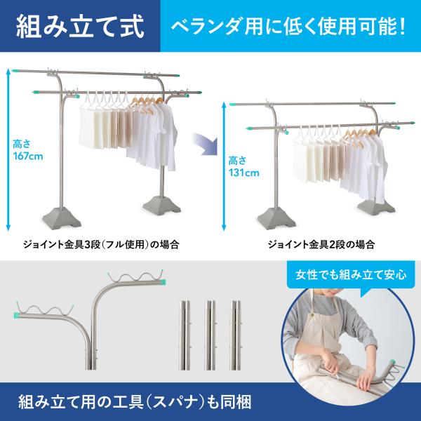 物干し台 屋外 風に強い オールステンレス 組み立て式 段違い 一体型 1穴 コンクリートベースセット CF-104KA