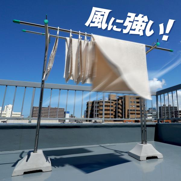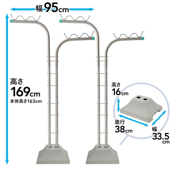 物干し台 屋外 風に強い オールステンレス 組み立て式 段違い 穴分離型 2穴 コンクリートベースセット CF-204KA