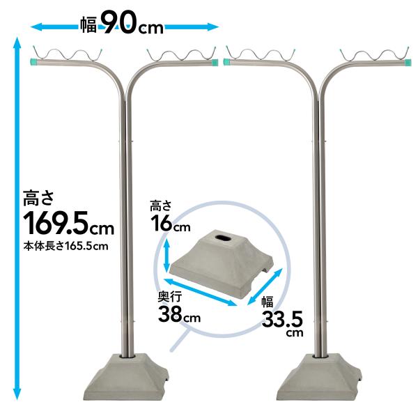 物干し台 屋外 風に強い オールステンレス 組み立て不要 平行タイプ 一体型 1穴 コンクリートベースセット CT-1K