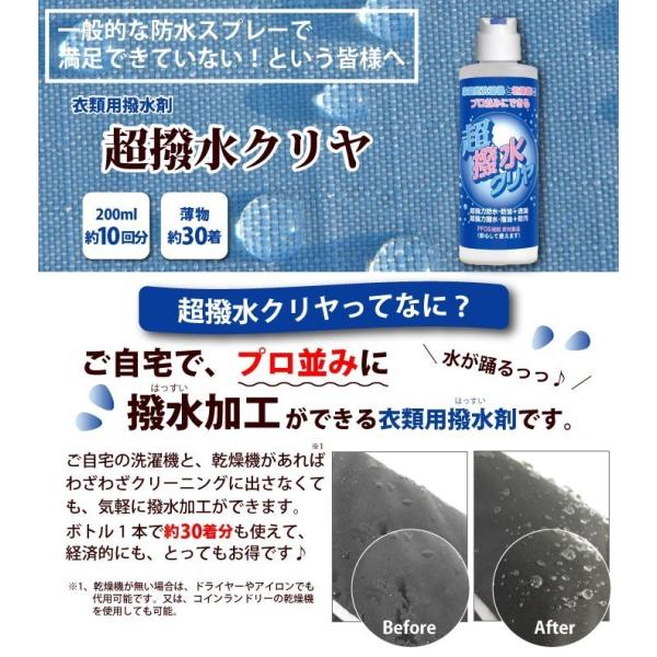 防水 撥水 スプレー では満足できない方へ 超強力 衣類用 撥水加工剤 「超撥水クリヤ 200ml」 簡単 プロ並み加工