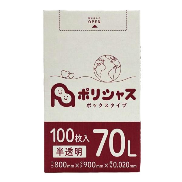 ゴミ袋 70L 半透明 200枚 箱タイプ 0.020mm厚 100枚×2小箱販売 1小箱あたり1,550円 1枚15.5円 HDPE素材 ポリ袋 ビニール袋 BOX-730-2kb