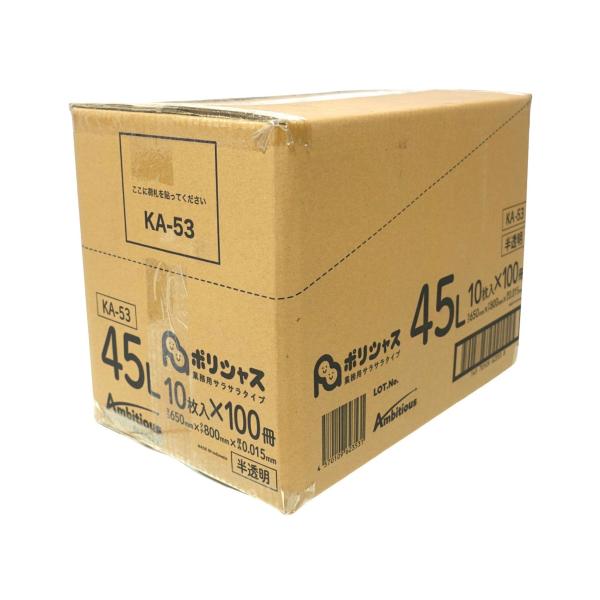 ゴミ袋 45L 半透明 10枚×100冊x1ケース(1000枚) 0.015mm厚 1冊あたり64円 HDPE素材 ポリ袋 ビニール袋 KA-53