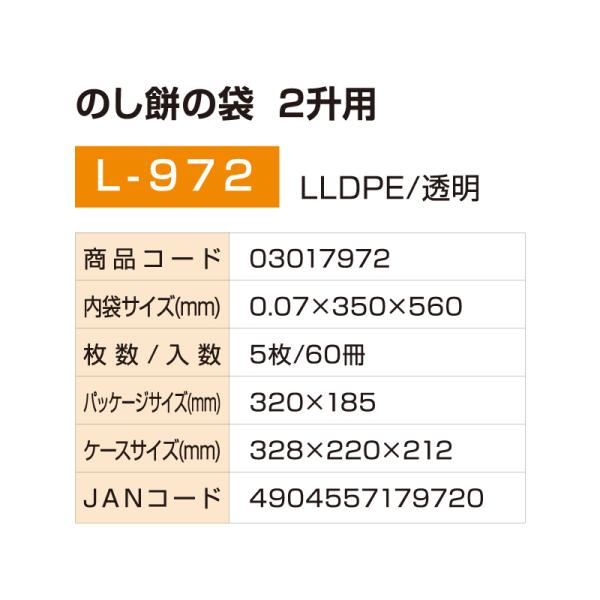 のし餅の袋 2升用(5枚入り)L-972 厚さ0.07mm×横350mm×縦560mm のし餅袋 保存袋 のし餅 もち 餅 お餅 おもち のし餅用 袋 保存 カビ防止 食品用袋