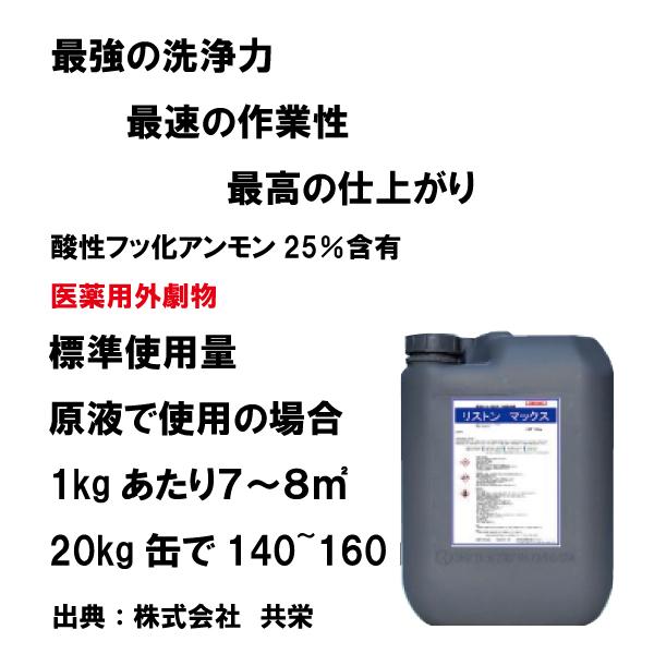 リストンマックス 20kg 送料無料 超重度の水垢・エフロ・サビ落とし 水垢取り洗剤 メーカー直送時間指定不可 共栄 業務用洗剤