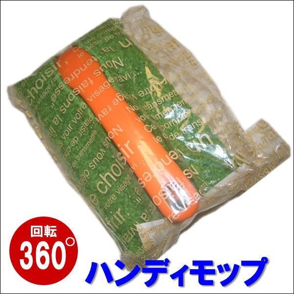くるくる360度回転するハンディモップ(本体:オレンジ/モップ:グリーン)<モップ部:日本製>「エコモコ☆ハンディ」 エコモコハンディモップ