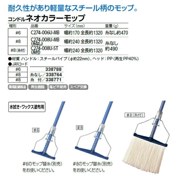 水拭き ワックス塗布用モップ(糸付) コンドル ネオカラーモップ #8 山崎産業 C274-008U-ST 業務用 お掃除 清掃