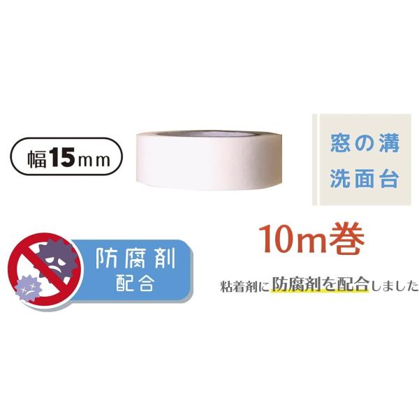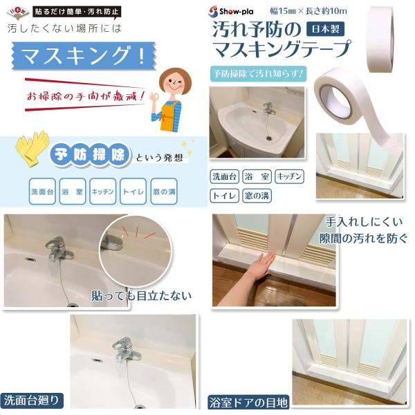 汚れ予防のマスキングテープ 15mm幅×10m 3巻組 汚れ防止 マステ 白 水垢 防カビ 溝 トイレ 洗面台 日本製 _.