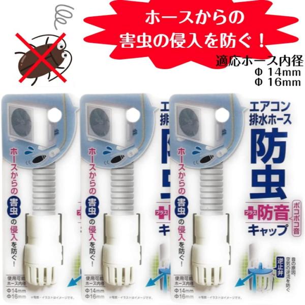 室外機 排水ホース 防虫+防音キャップ 3個セット エアコンホースのポコポコ音を軽減 害虫の侵入を防ぐ