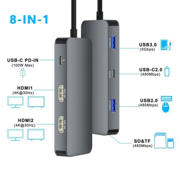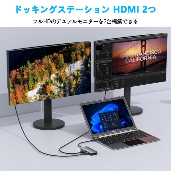 ドッキングステーション HDMI 2つ 8-IN-1ドッキングステーション Type c 3つUSB-A/PD 100W 急速充電/SD&TF