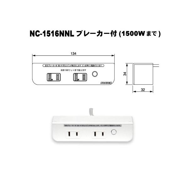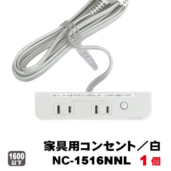 ノア家具用コンセント2ヶ口タイプNC-1516NNLブレーカー付(白色)1個 A品 電源タップ 延長コード 棚下 家具製作 DIY