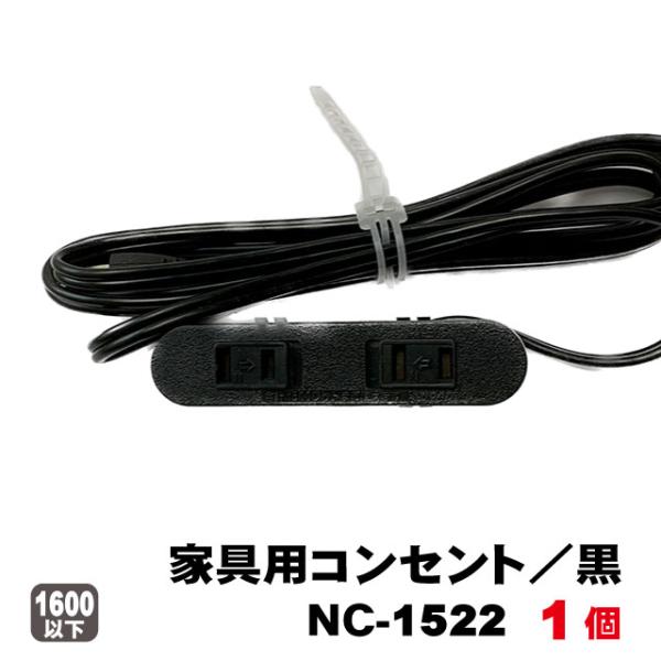 ノア家具用コンセント2ヶ口スライドタイプNC-1522(黒色)1個 A品 電源タップ 延長コード 埋め込み 家具製作 DIY