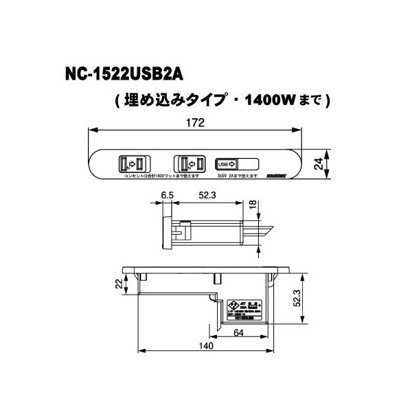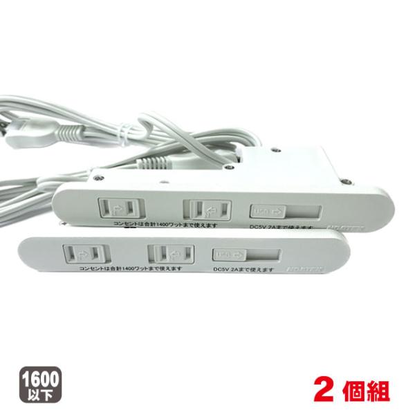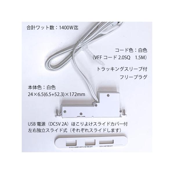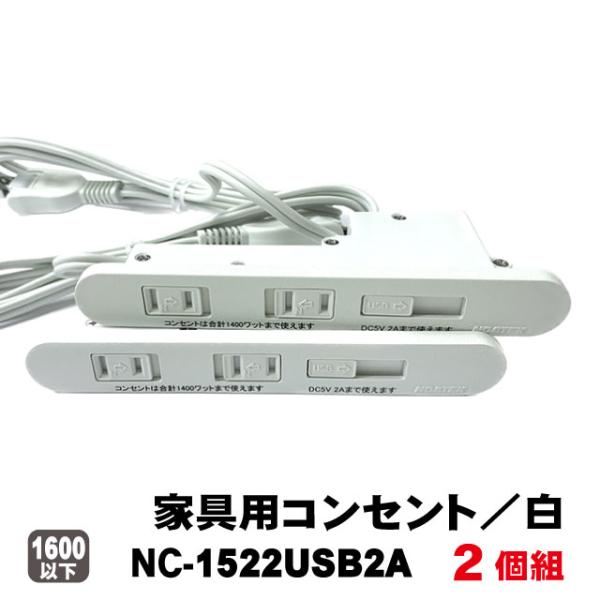 家具用コンセントノア2ヶ口スライドタイプNC-1522USB2A(白色)2個組 A品