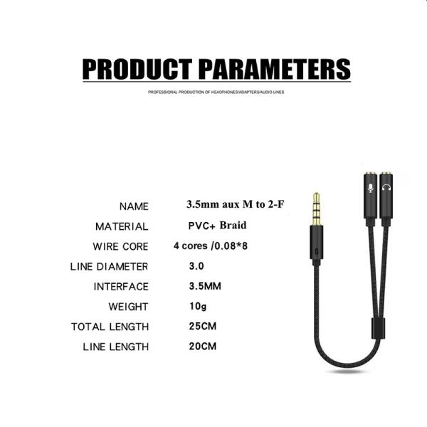 3.5mm ヘッドセットアダプタ 4極(ケーブル長 約20cm) 3極 ヘッドホン&マイク用 Yスプリッターケーブル[L3]