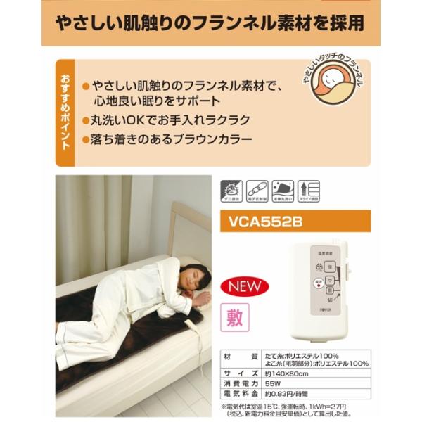 広電 フランネル電気敷毛布 VCA552B 140×80cm やさしい肌触り