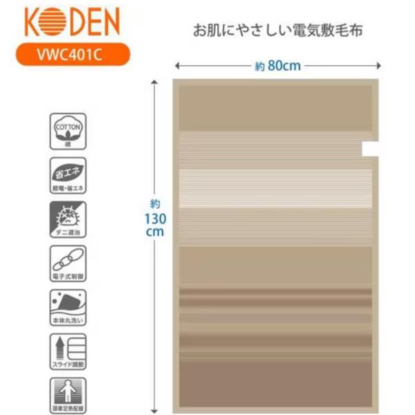 広電 電気敷毛布 VCE 401 C 敷毛布 毛布 電気 暖房 電気毛布 綿 シンプル おしゃれ ベージュ 茶色 ブラウン 寒さ対策 敏感肌 繊細肌 肌に優しい