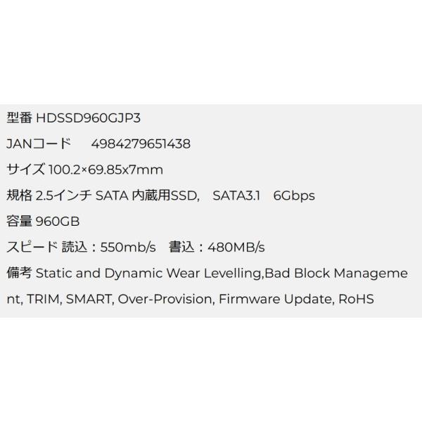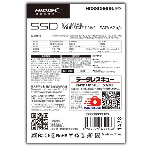 SSD 960GB 2.5インチ 内蔵型 SATA3 6Gb/s HIDISC ハイディスク R:550MB/s W:480MB/s 3D-TLC採用 TBW:480TW 7mm厚 HDSSD960GJP3 ◆メ