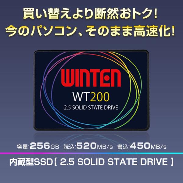 WINTEN 内蔵SSD 256GB 3年保証 2.5インチ SSD SATA3 6GB/s 3D NAND PS4 動作確認済 フラッシュ搭載 エラー訂正 省電力 WT200-SSD-256GB 5589