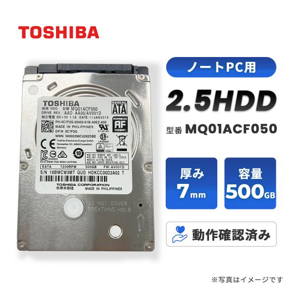 中古 HDD 500GB 2.5インチ SATA 7mm MQ01ACF050 TOSHIBA 内蔵 ノートPC用 動作確認済