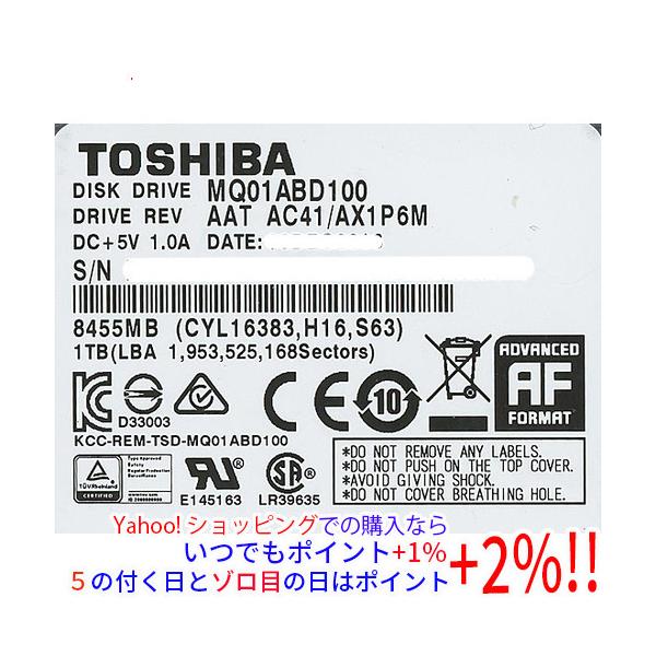 【中古】TOSHIBA(東芝) ノート用HDD 2.5inch MQ01ABD100 1TB 12000〜13000時間以内