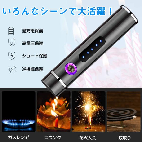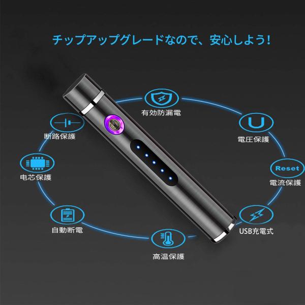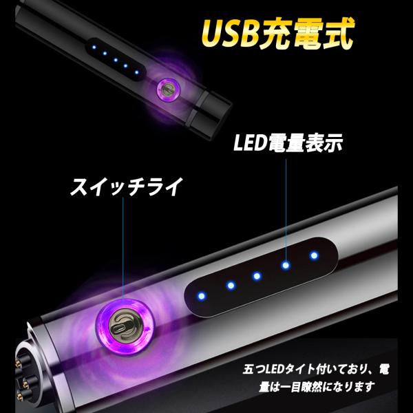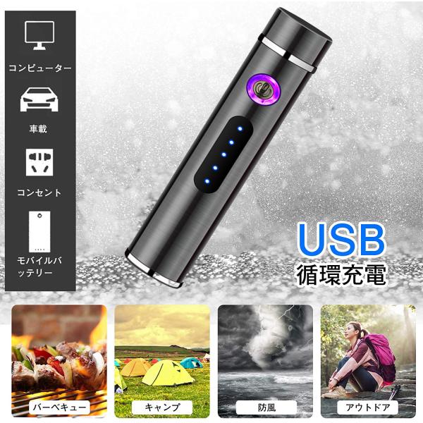 電子ライター USB 防風 防水 無炎 Miniサイズ 使用便利 PSE認証 携帯便利 おしゃれ アウトドア用トーチ 防風 軽量 残りのバッテリーを示すLED