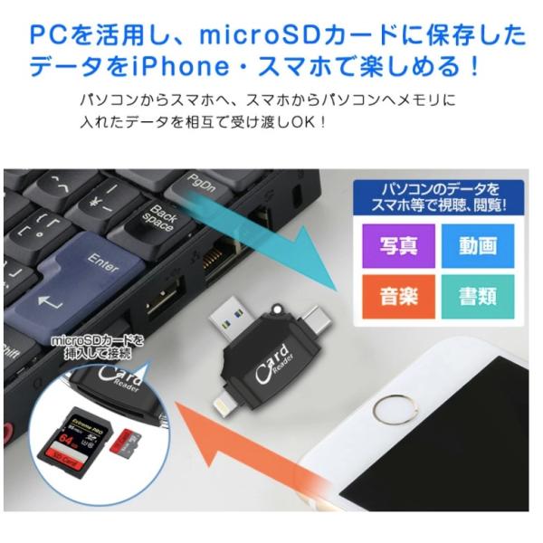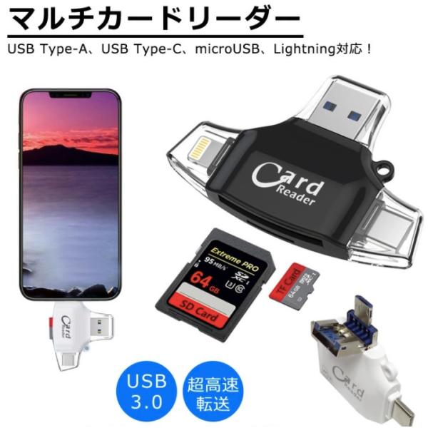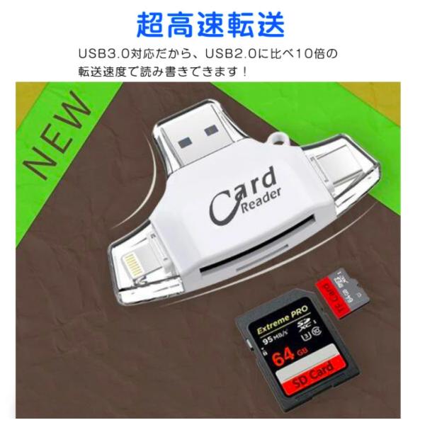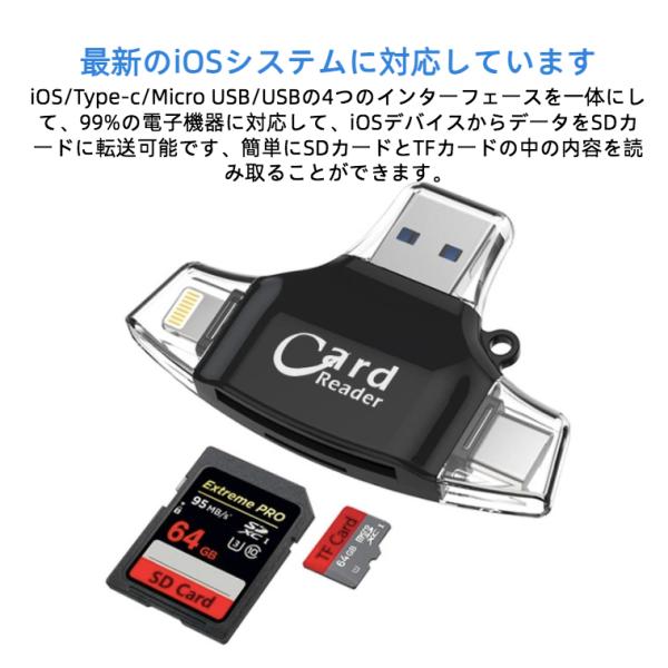 ★スマホもPCも即データ転送 ★【4in1 多機能 SDカードリーダー 】iPhone iPad Type-C USB対応|SDカード microSD対応・高速データ転送【ハレゾラTBP公式店】