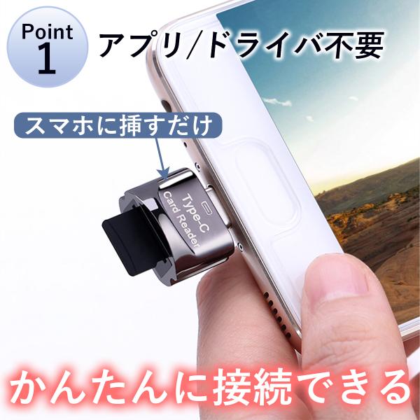 マイクロSDカードリーダー USB type-C OTG対応 micro sd データ転送 android スマホ タブレット Windows Mac マック ウィンドウズ