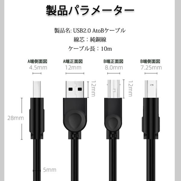 プリンター用USB-AtoBケーブル 10m USB2.0 コード10メートル USBAオスtoメUSBBオス データ転送 パソコン スキャナー 複合機 有線接続 コネクタ キャノン 黒色