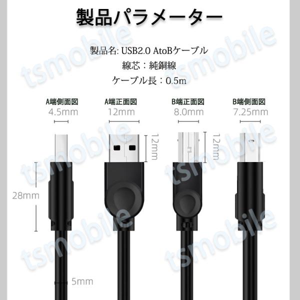 プリンター用USB-AtoBケーブル 50cm USB2.0 コード0.5メートル USBAオスtoメUSBBオス データ転送 パソコン スキャナー 複合機 有線接続 コネクタ キャノン 黒色