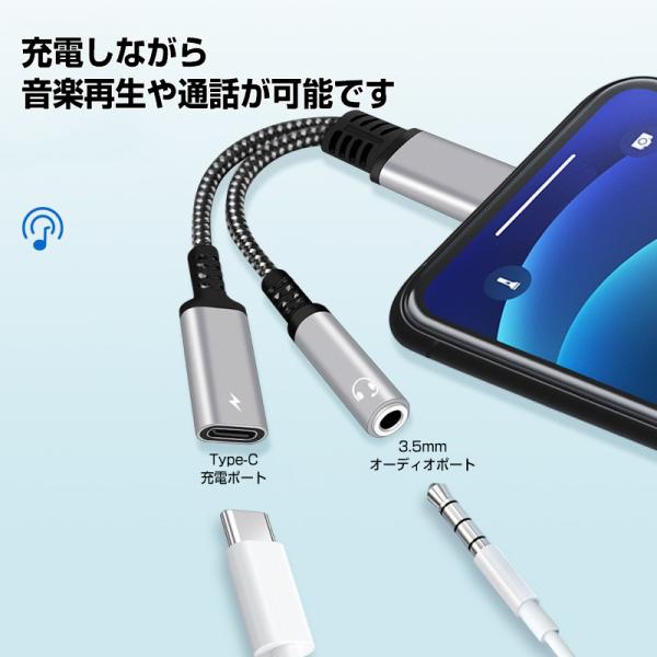 オーディオ変換アダプター USB Type-C イヤホンジャック 急速充電 60W DAC マイク機能 アンドロイド スマホ タブレット スマートフォン android USB-C |L